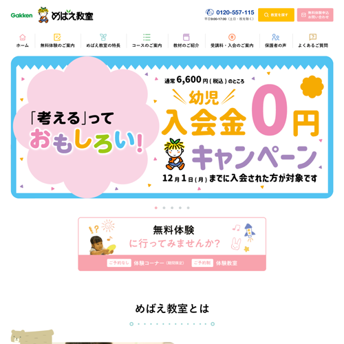 めばえ教室が育てるのは、「読み・書き・計算」などの答えや結果を求める目先の学力ではありません。楽しい遊びの中で考えたり憶えたりする楽しさや、認められる嬉しさ、自ら発見する喜びを知ることで、お子さまの「知」「情」「意」を豊かに育くんでいくことにあります。めばえ教室を通して、お子さまの未来の選択肢や可能性が大きく広がることを願っています。オリジナルの教材を使って、知能を伸ばし、お子さまが本来持っている可能性の芽を伸ばすお手伝いをしています。